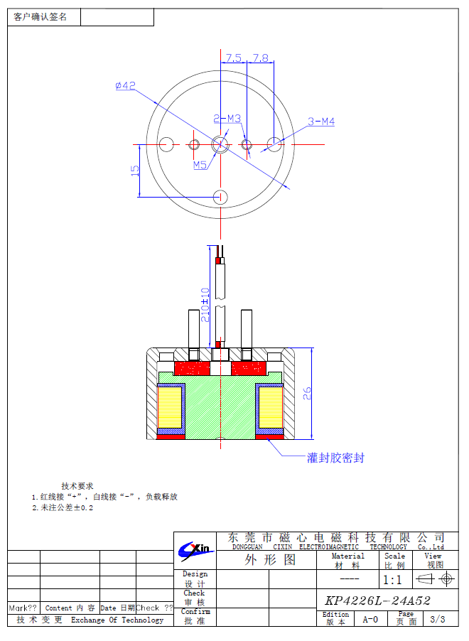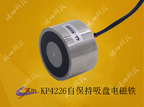 自保持吸盤電磁鐵KP4226,又稱為失電電磁鐵,就是電磁鐵在短電狀態下有磁性,通電消磁,然后再斷電有具有磁性的一款自保持吸盤電磁鐵。