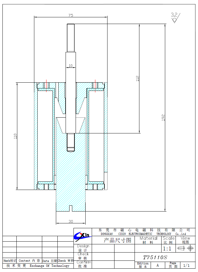 T75110推拉電磁鐵的尺寸圖如下: