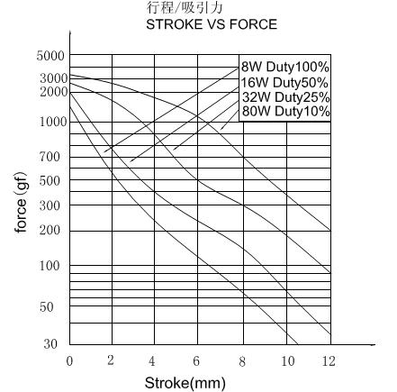 縱向:代表電磁鐵在對應行程時的力量   單位為克(g)