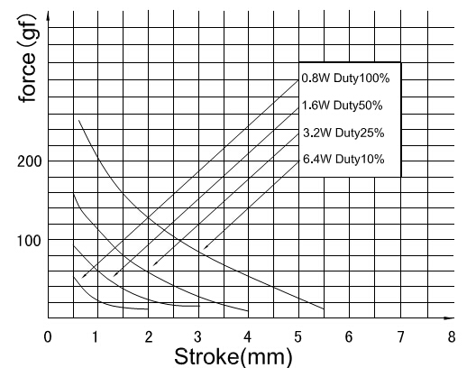 縱向:代表電磁鐵在對(duì)應(yīng)行程時(shí)的力量   單位為克(g